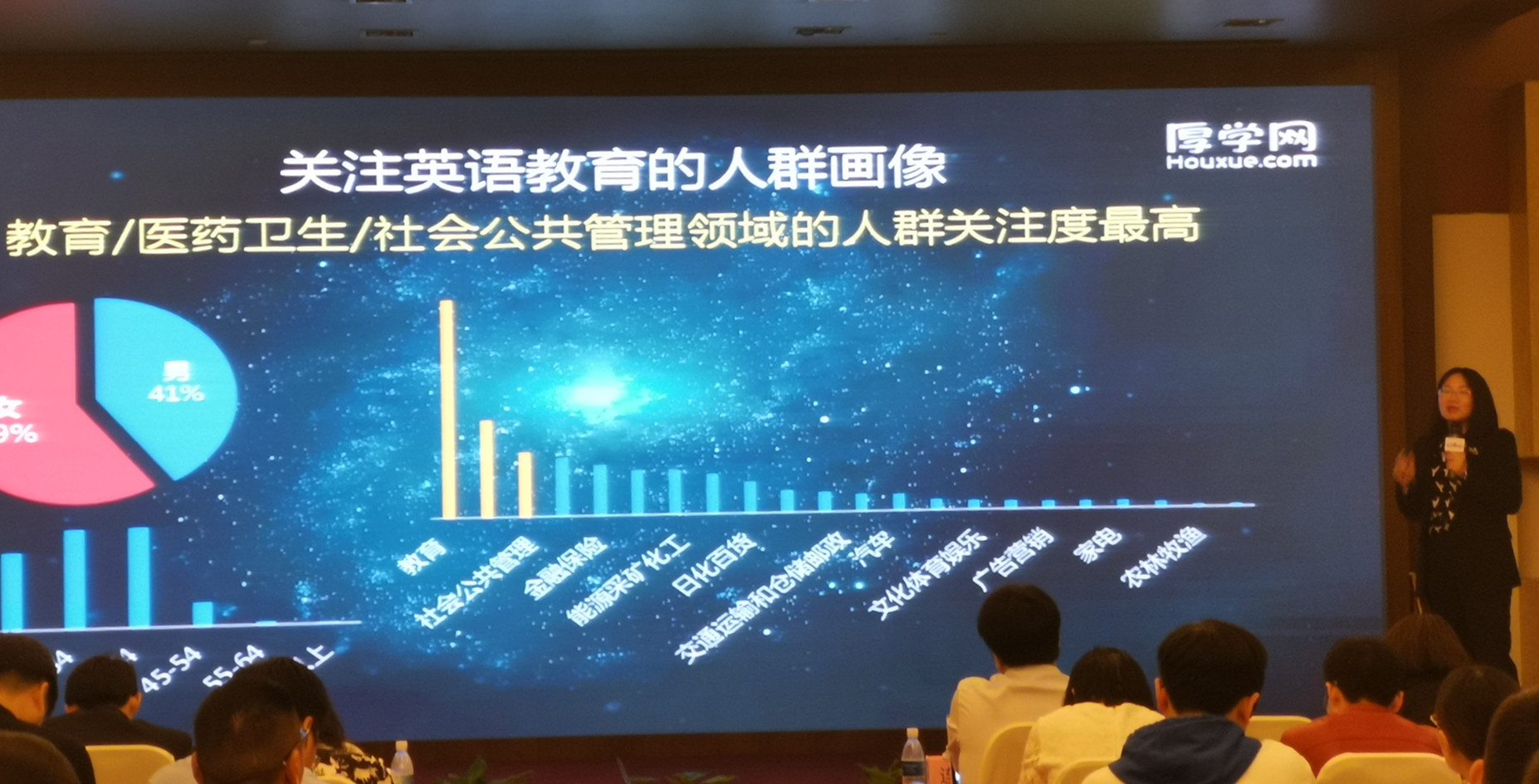 厚學(xué)網(wǎng)的運(yùn)營(yíng)總監(jiān)魏靜靜向大家展示了南京本地教育行業(yè)大數(shù)據(jù),詳細(xì)地分析了當(dāng)下教育行業(yè)各細(xì)分行業(yè)的發(fā)展情況,讓大家更加透徹地知道了市場(chǎng)情況,對(duì)教育企業(yè)的發(fā)展方向及策略起到一定的參考意義。