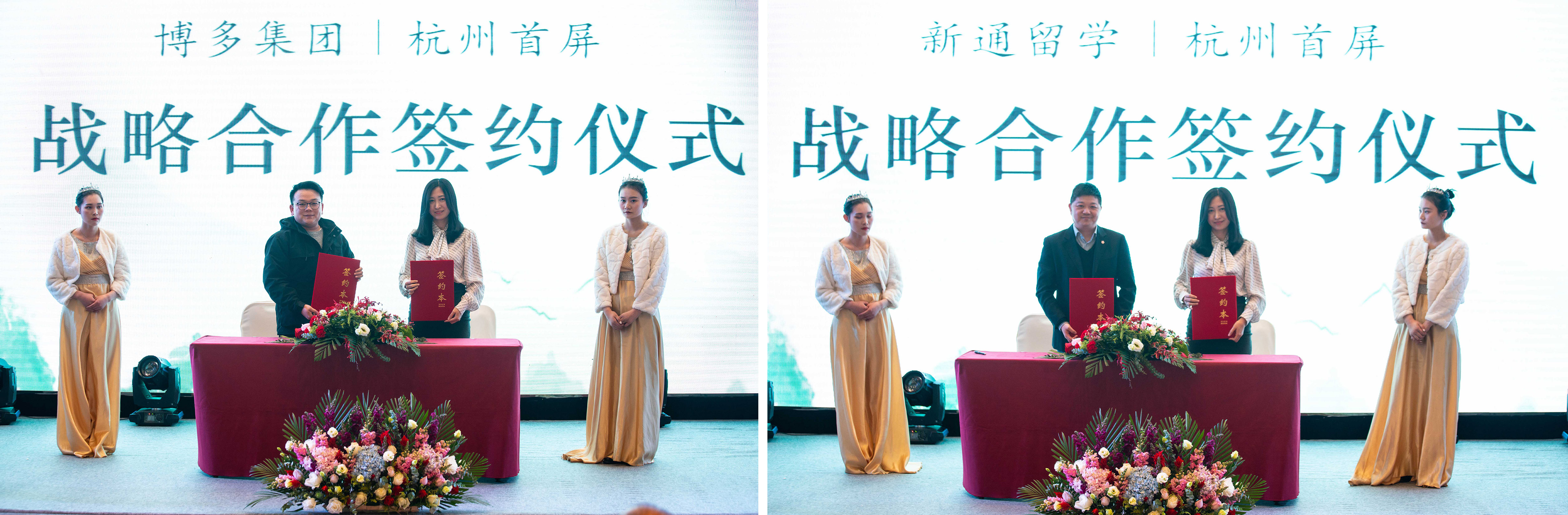 緊接著,杭州首屏科技有限公司高源先生也依次與浙江新通留學(xué)有限公司、浙江博多投資管理有限公司兩家優(yōu)質(zhì)品牌企業(yè)簽訂了長(zhǎng)期戰(zhàn)略合作協(xié)議。