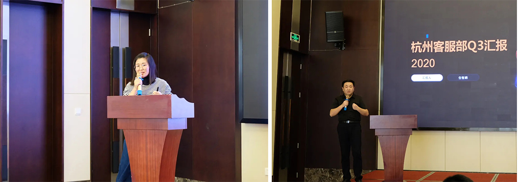 接下來,南京首屏副總經理高娜、杭州客服部總監(jiān)任智鵬分別針對南京、杭州客服業(yè)務開展工作匯報,深度剖析Q3工作成果、分析總結存在的問題和難點,并對Q4的工作重心進行詳細規(guī)劃。