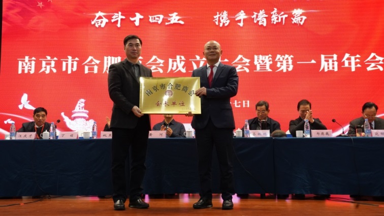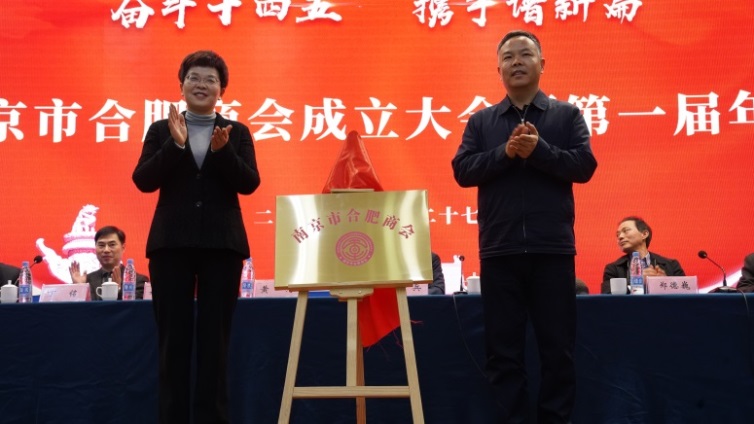 南京市政協(xié)副主席黃河,合肥市政協(xié)副主席、市工商聯(lián)主席姚亞妹現(xiàn)場共同為南京市合肥商會揭牌。