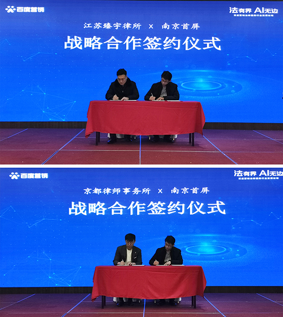 在多年的發(fā)展中,離不開廣大法律服務(wù)行業(yè)客戶的信任與支持,會上南京首屏與江蘇臻宇律所、京都律師事務(wù)所簽訂戰(zhàn)略合作協(xié)議,借助百度平臺推動律所的創(chuàng)新式營銷能力,促進(jìn)法律服務(wù)行業(yè)的發(fā)展。